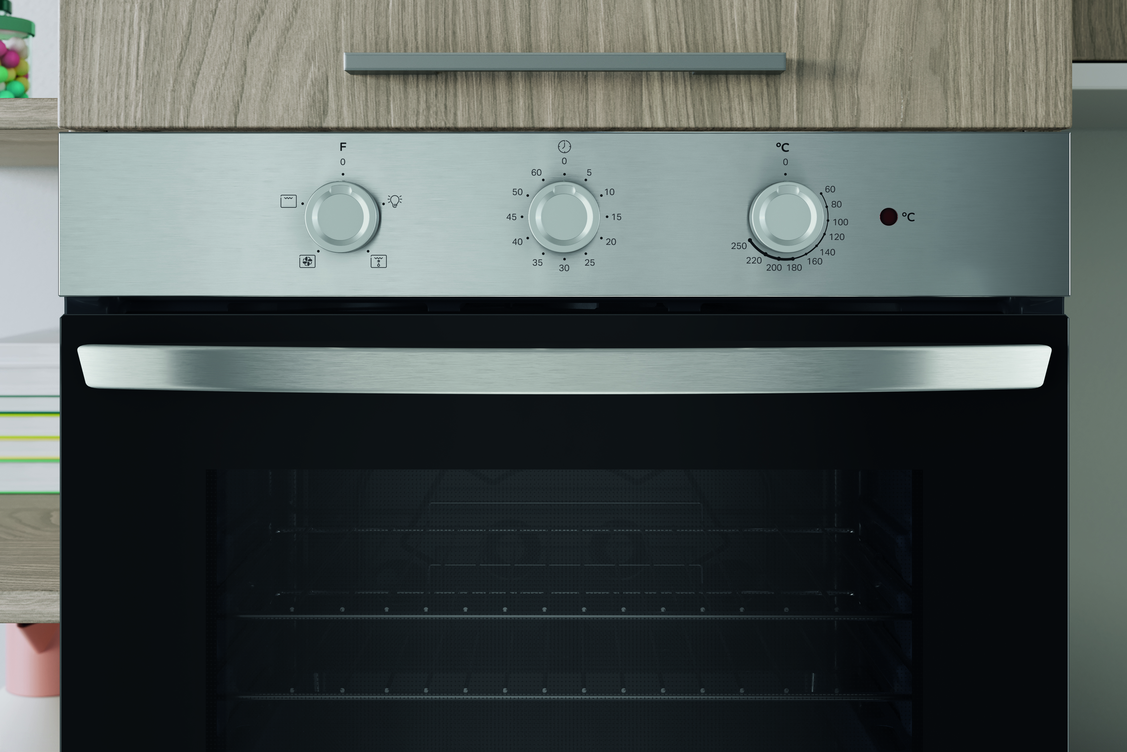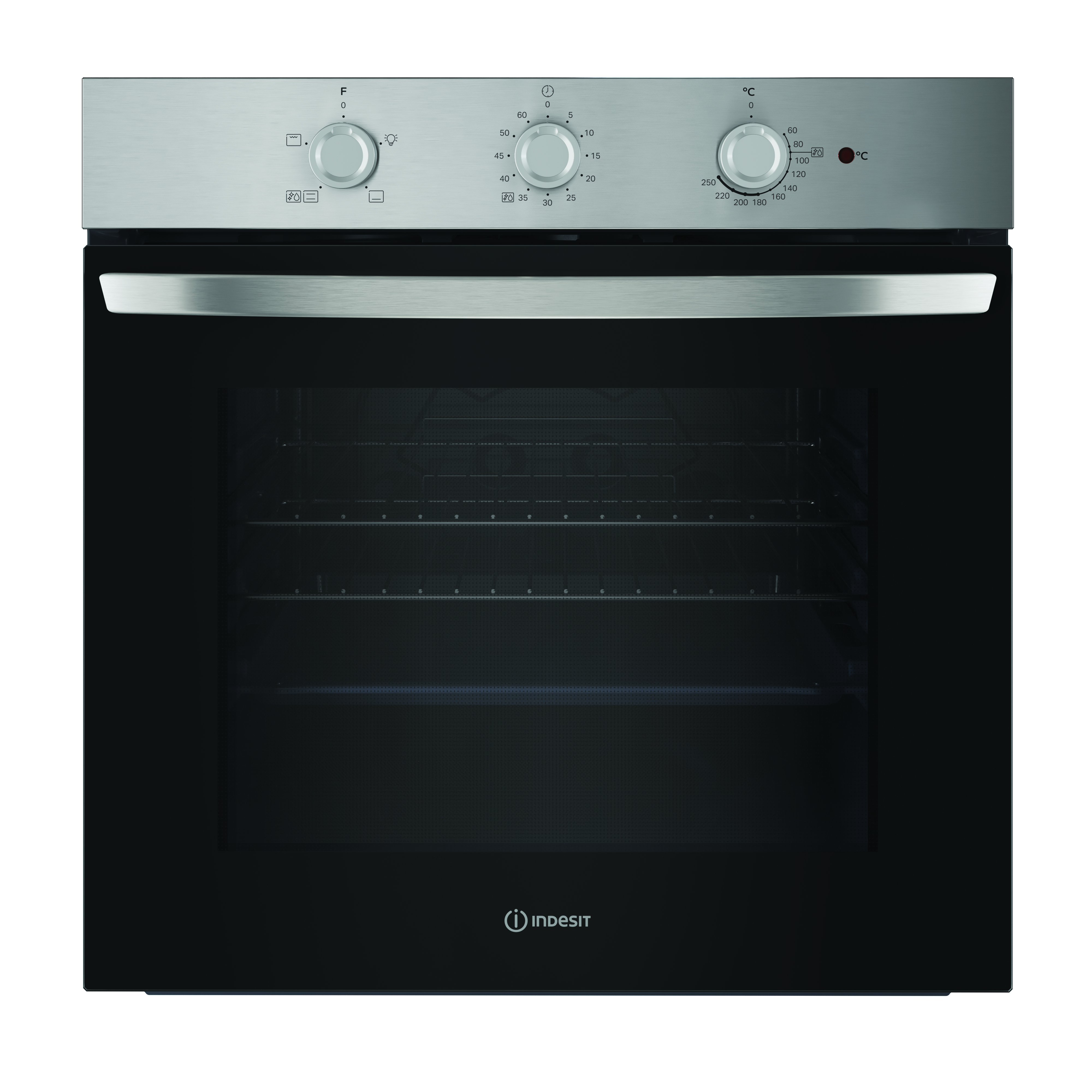 This Indesit oven features a classic Inox design that combines practicality with performance, allowing anyone to achieve delicious cooking results the whole family will enjoy. Inside, even heat radiates from the top and bottom elements, while the extra-large 71L capacity offers plenty of room for cooking large meals or multiple dishes at once - ideal for Sunday roasts or get-togethers with friends. Designed for convenience, this oven includes dials for manual control of both temperature and timer settings, helping you easily keep track of cooking times. And with a UK plug fitted, you just plug it in, and you're ready to go. Cleaning your oven has also never been simpler. The EcoClean cycle uses the natural power of steam to lift stubborn food splashes and grease in just 35 minutes. Plus, the handy Click&Clean system lets you easily remove the inner glass of the door while the Tilting Grill unhooks and tilts, making cleaning those hard-to-reach spots a breeze so you can spend more time with your family. What's more, this oven has an A energy rating, offering energy efficiency to help keep your bills lower.