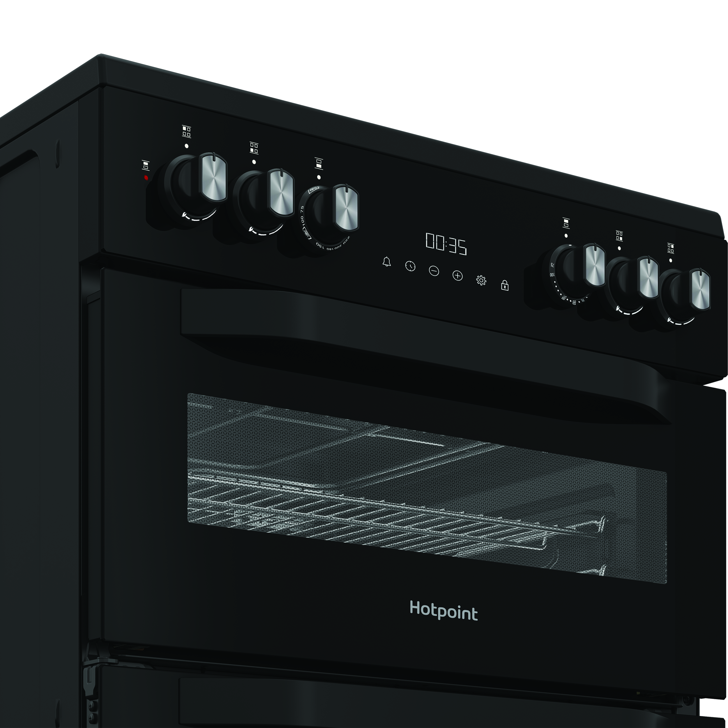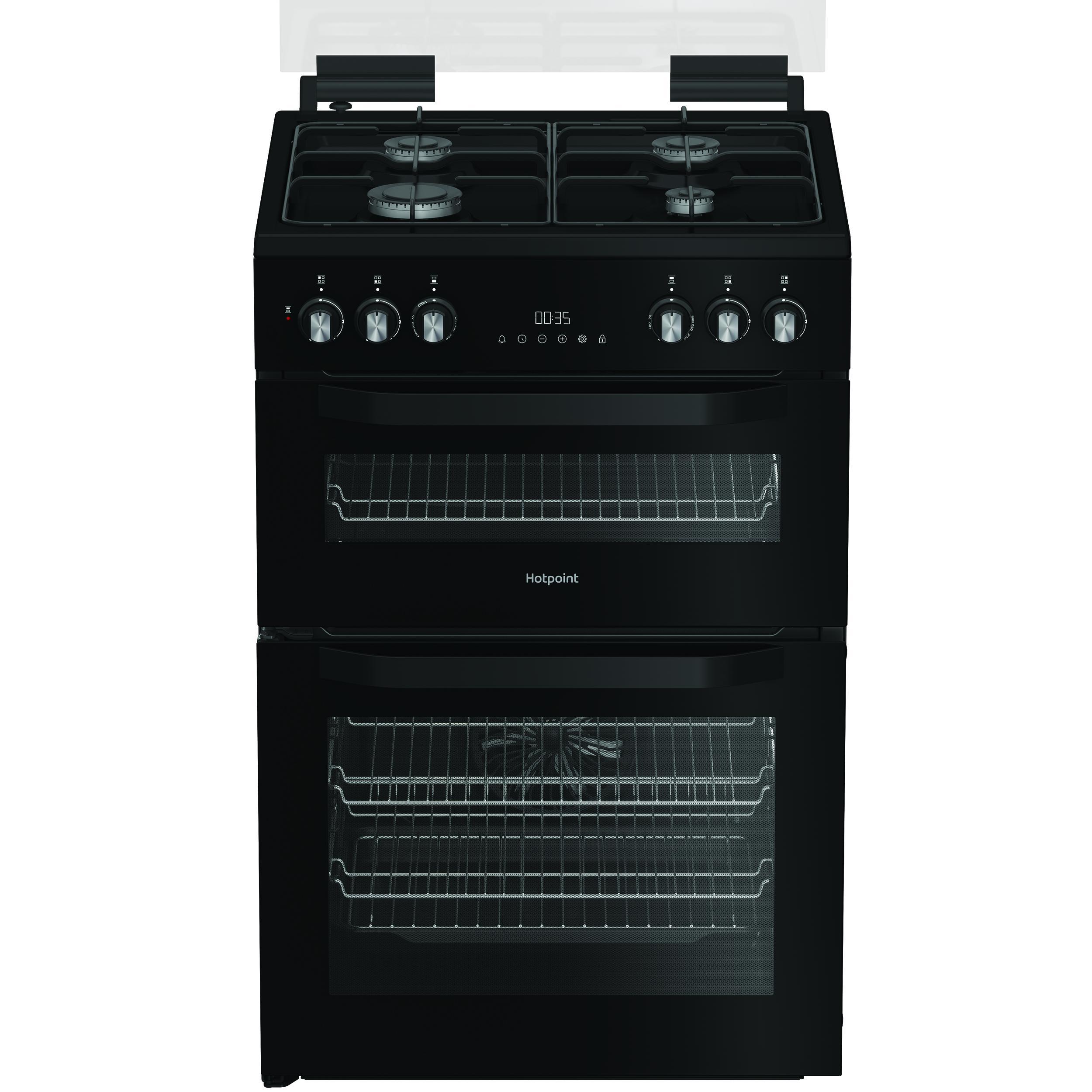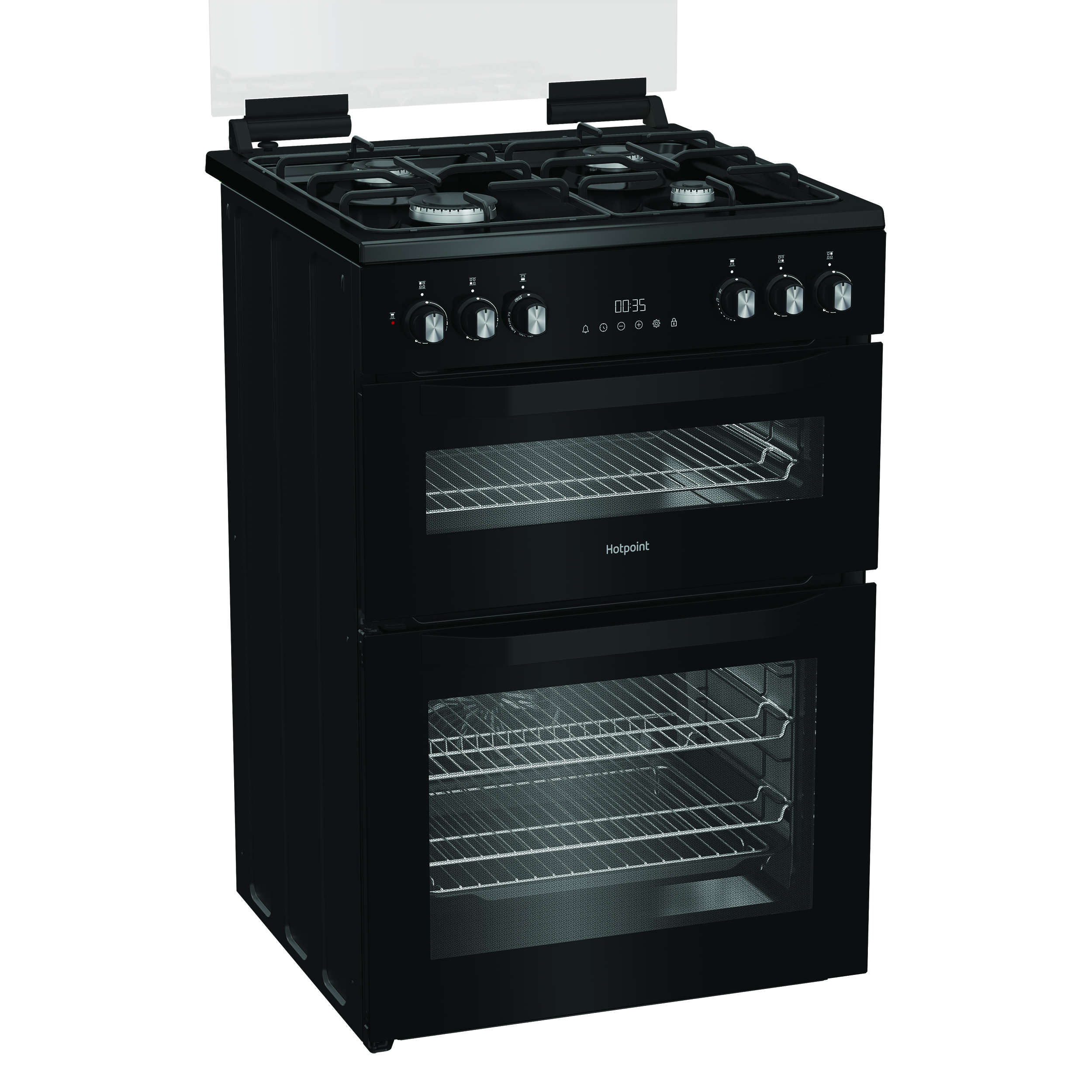 Thoughtfully designed with the latest technology and a timeless style, this Hotpoint freestanding cooker is the perfect addition to your kitchen. it°s ideal for everything from hearty family favourites to adventurous new recipes. This 60cm width cooker has an impressively large main oven, giving you plenty of space to cook with ease. Complemented by a smaller top oven, this cooker gives you added flexibility to cook a variety of meals, whatever the occasion. Catalytic Liners in both ovens catch grease and fat splatters, burning them off while you cook, so all you need to do is wipe away any residue for a hassle-free clean. The gas hob features a triple crown wok burner that optimises the power of gas, delivering even heat around the pan, so you can whip up a stir fry in minutes. The glass lid helps protect your kitchen from splatters and aligns with your work surface when closed, creating additional space when the cooker is not in use. If you don't have access to natural gas, there's a handy kit to easily convert it to liquefied petroleum gas (LPG). On top of these great features, this cooker also has an A energy rating, delivering outstanding performance while maintaining excellent energy efficiency.