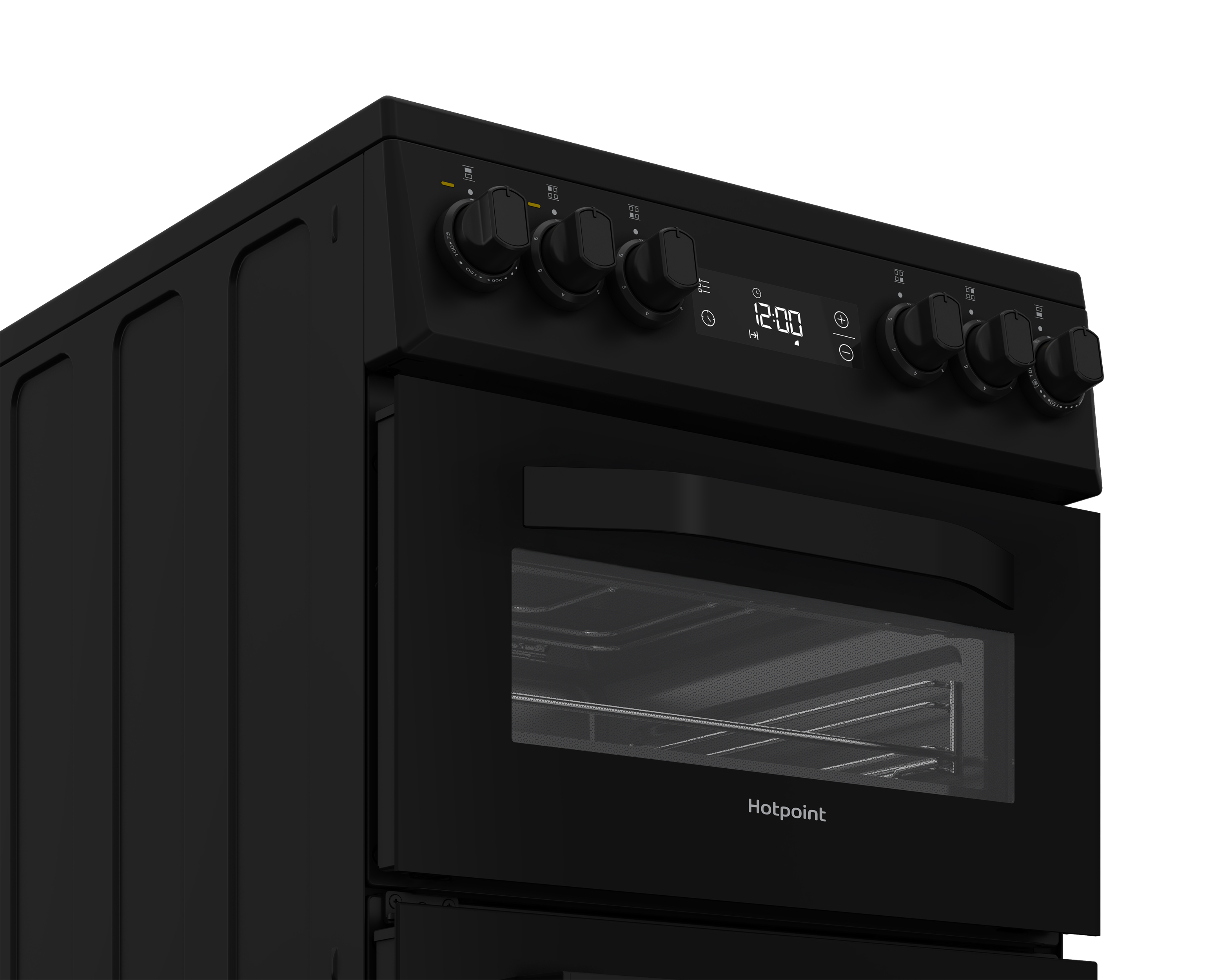Thoughtfully designed with the latest technology and a timeless style, this Hotpoint freestanding cooker is the perfect addition to your kitchen. Finished in sleek black, it°s ideal for everything from hearty family favourites to adventurous new recipes. This 50cm width cooker has an impressive 62L main oven capacity, giving you plenty of space to cook with ease. The Digital Display has a clock and handy timer to alert you when your meal is ready. Plus, the oven light lets you check on your dishes without opening the door, keeping heat locked in for perfect results. Complemented by a smaller top oven, this cooker gives you added flexibility to cook a variety of meals, whatever the occasion. The ceramic hob offers both ease and simplicity in the kitchen, so you can whip up a tasty meal in no time. Residual Heat Indicators light up to let you know if the surface is still too hot to touch, even after you've turned it off, keeping you safe from accidental burns. On top of these great features, this cooker also has an A energy rating, delivering outstanding performance while maintaining excellent energy efficiency.