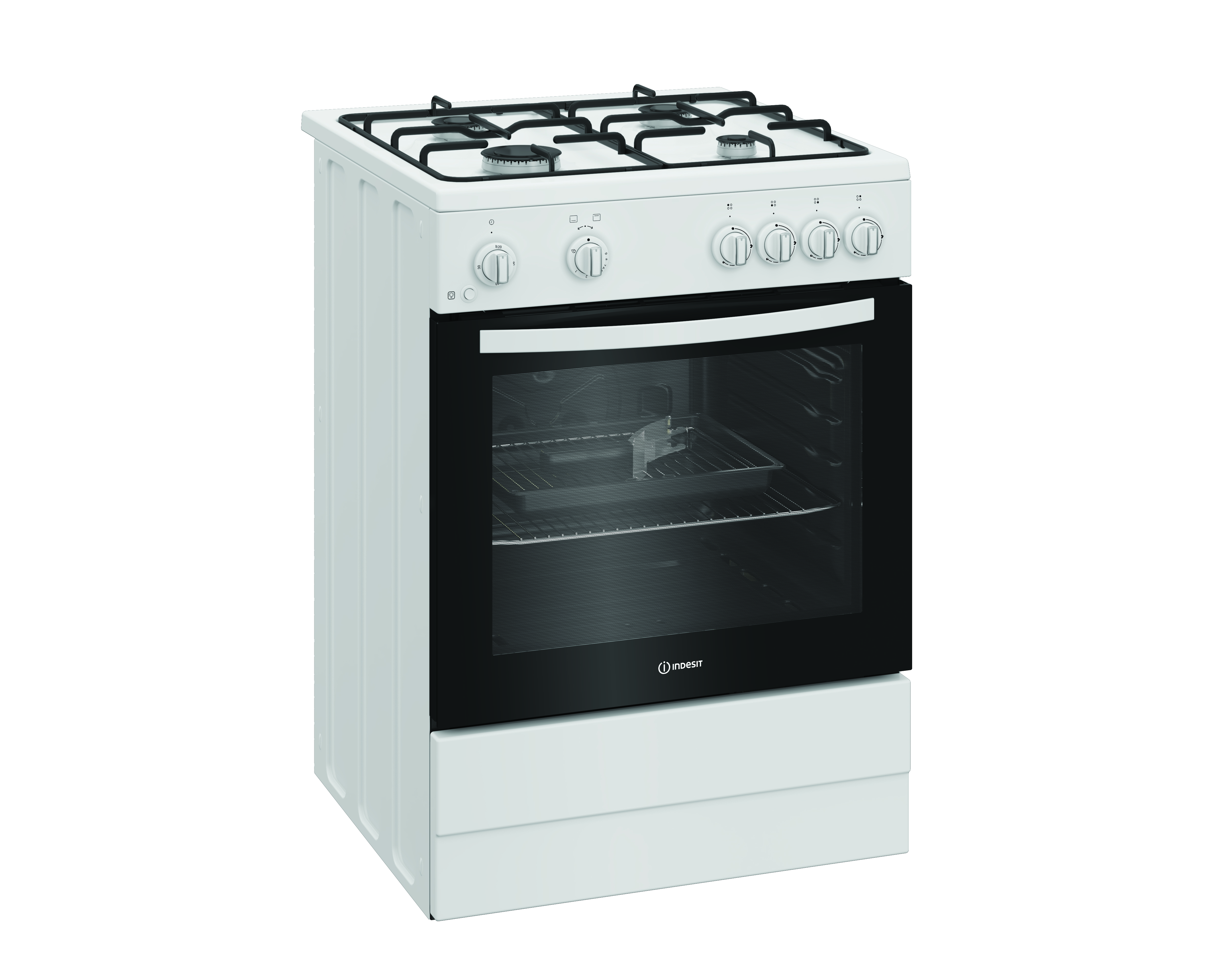 Enjoy making delicious dishes for the whole family with this Indesit freestanding cooker. Finished in classic white, it brings a stylish yet timeless touch to your kitchen. This 60cm cooker has a large oven, giving you plenty of space to cook all kinds of meals. Plus, the oven light lets you check on your food without opening the door, while the handy programmable timer lets you set the cooking length or finish time so your meals will be ready when you are. The 4 burner gas hob lights up instantly at the press of a button with Auto Ignition, and the sturdy enamel supports keep your pans stable for hassle-free cooking. With an impressive A+ energy rating, this cooker is as efficient as it is easy to use - perfect for everyday meals.