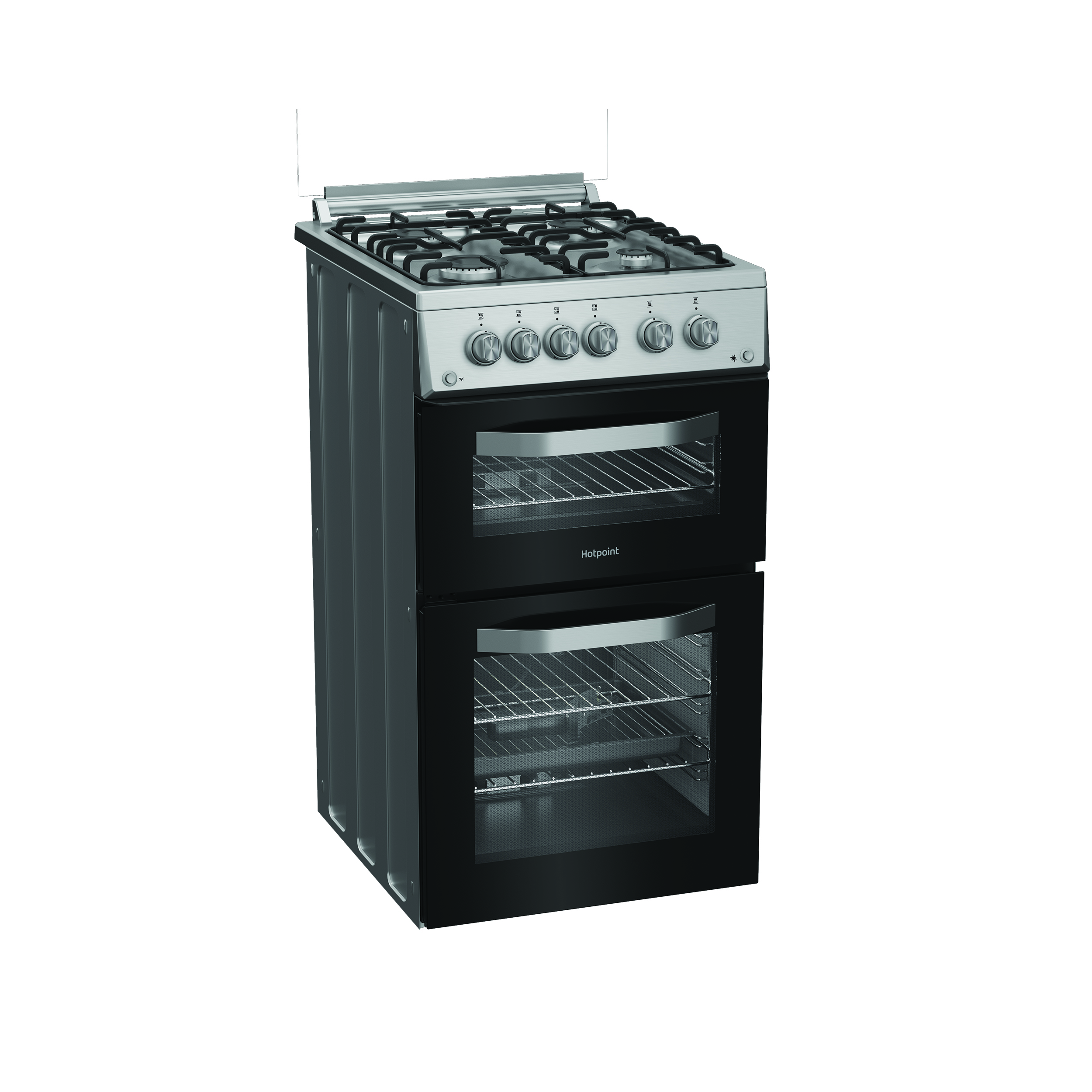 Thoughtfully designed with the latest technology and a timeless style, this Hotpoint freestanding cooker is the perfect addition to your kitchen. it°s ideal for everything from hearty family favourites to adventurous new recipes. This 50cm width cooker has an impressive 59L main oven capacity, giving you plenty of space to cook with ease. The Fast Preheat setting gets your oven up to temperature in just 5 minutes, so you can start cooking without the wait. Plus, the oven light lets you check on your dishes without opening the door, while the timer will alert you when your meal is ready so you won°t have to worry about overcooking dinner. Complemented by a smaller top oven, this cooker gives you added flexibility to cook a variety of meals, whatever the occasion. The gas hob offers both convenience and stability, featuring durable enamel supports to keep pans secure and Auto Ignition to light up the hob instantly. If you don't have access to natural gas, there's a handy kit to easily convert it to liquefied petroleum gas (LPG). On top of these great features, this cooker also has an A+ energy rating, delivering outstanding performance while maintaining excellent energy efficiency.