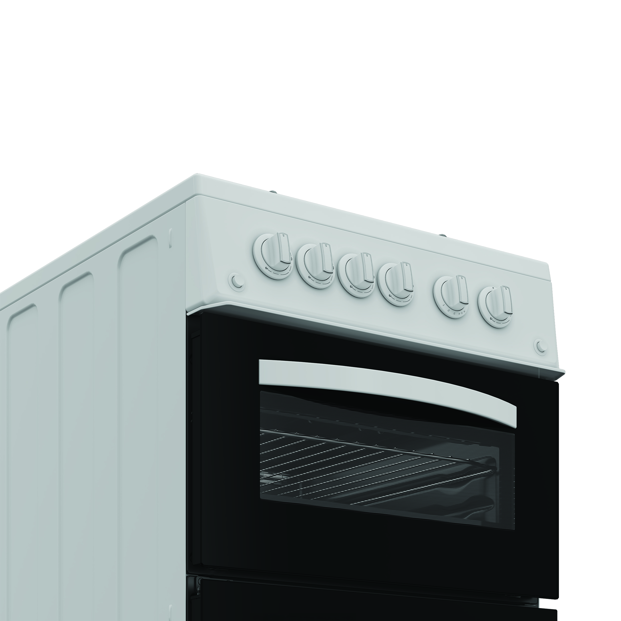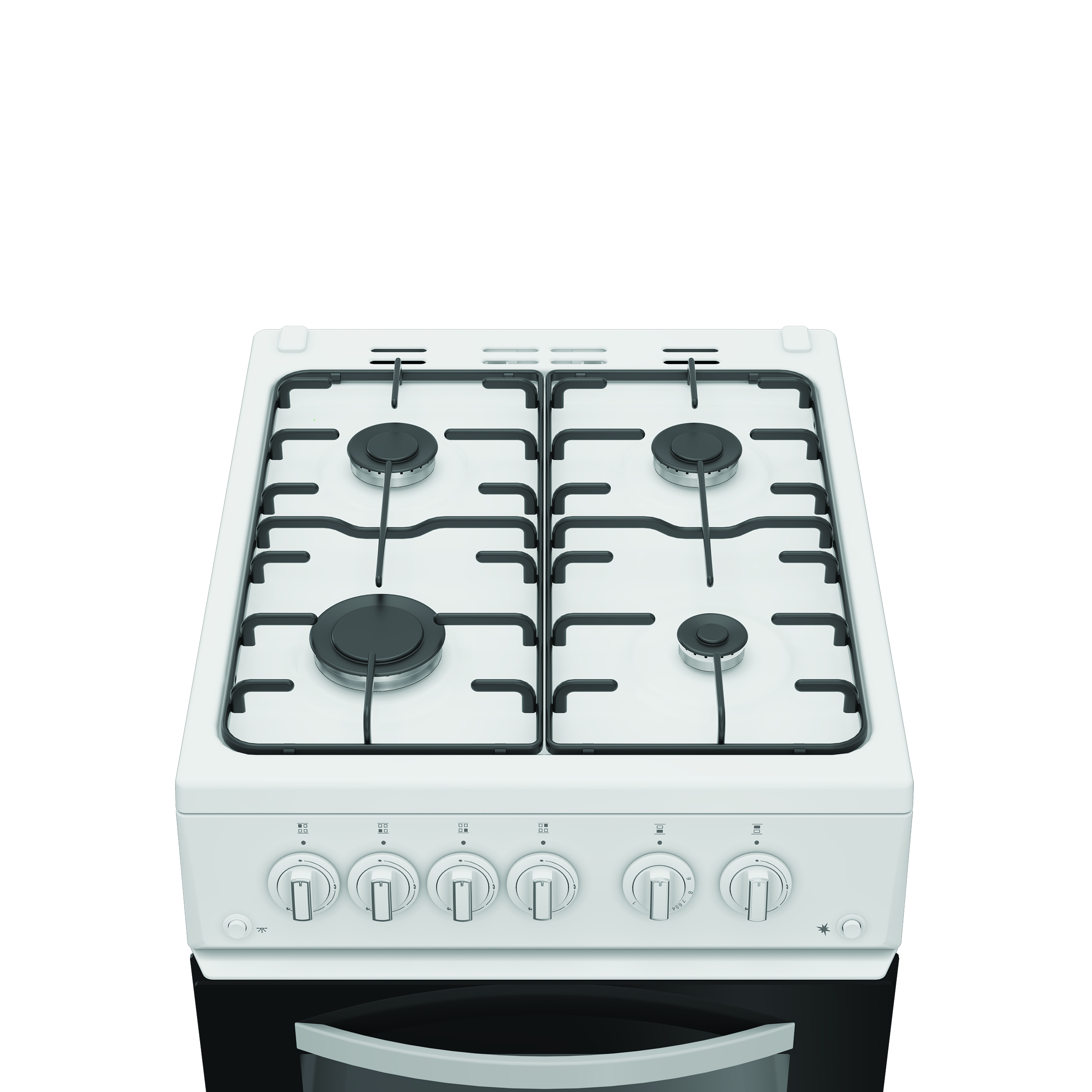 Enjoy making delicious dishes for the whole family with this Indesit freestanding cooker. Finished in classic white, it brings a stylish yet timeless touch to your kitchen. This 50cm cooker is split between a 54L main oven and a top grill compartment, giving you plenty of flexibility to cook all kinds of meals. Fast Preheat gets your oven up to temperature quickly and efficiently, so you can start cooking without the wait. Plus, the oven light lets you check on your food without opening the door. The gas hob lights up instantly at the press of a button with Auto Ignition, and the sturdy enamel supports keep your pans stable for hassle-free cooking. Fast Boil quickly boosts the heat to get your water boiling in no time, while the built-in Flame Failure Device keeps things safe by automatically cutting off the gas supply if the flame goes out. With an impressive A+ energy rating, this cooker is as efficient as it is easy to use - perfect for everyday meals.