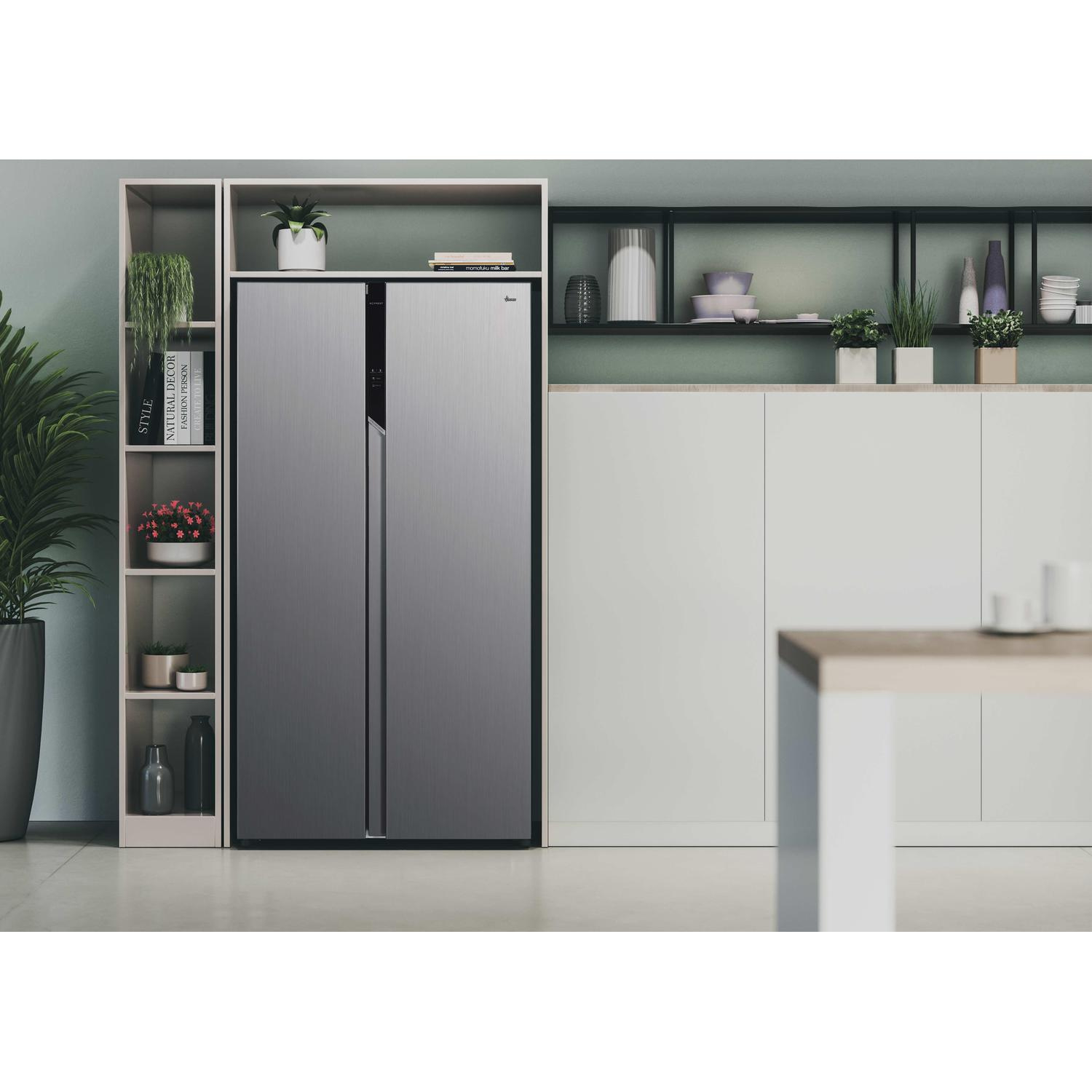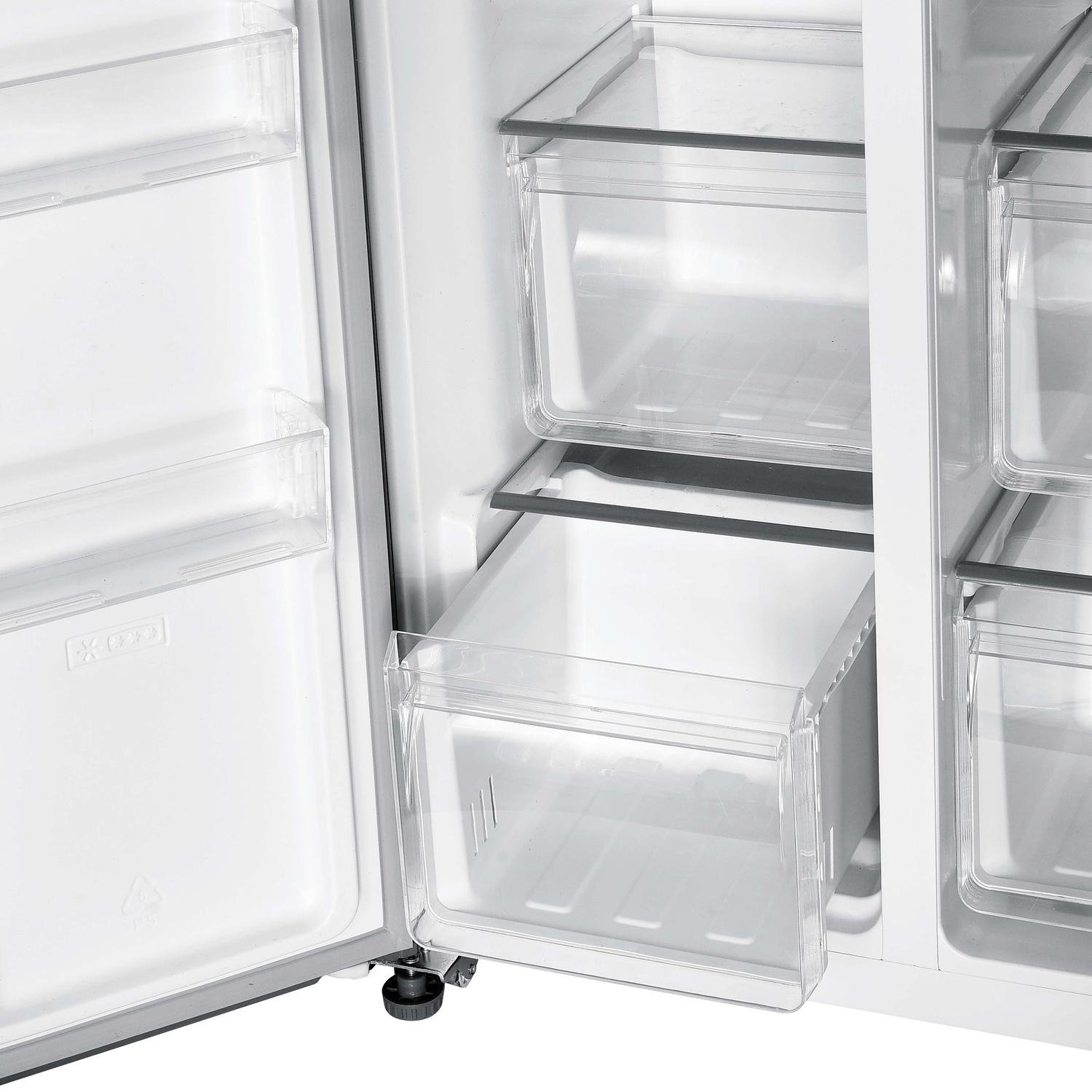 The Hoover HHSBSO-6174XK-1 is an impressive 91cm American fridge freezer that features a sleek stainless steel finish. This model combines innovative Total No Frost technology to prevent ice from forming in the freezer, ensuring optimal functionality and storage conditions. With a generous combined capacity of 532 litres, it provides ample space for your groceries, making it ideal for larger families or anyone who enjoys hosting gatherings.