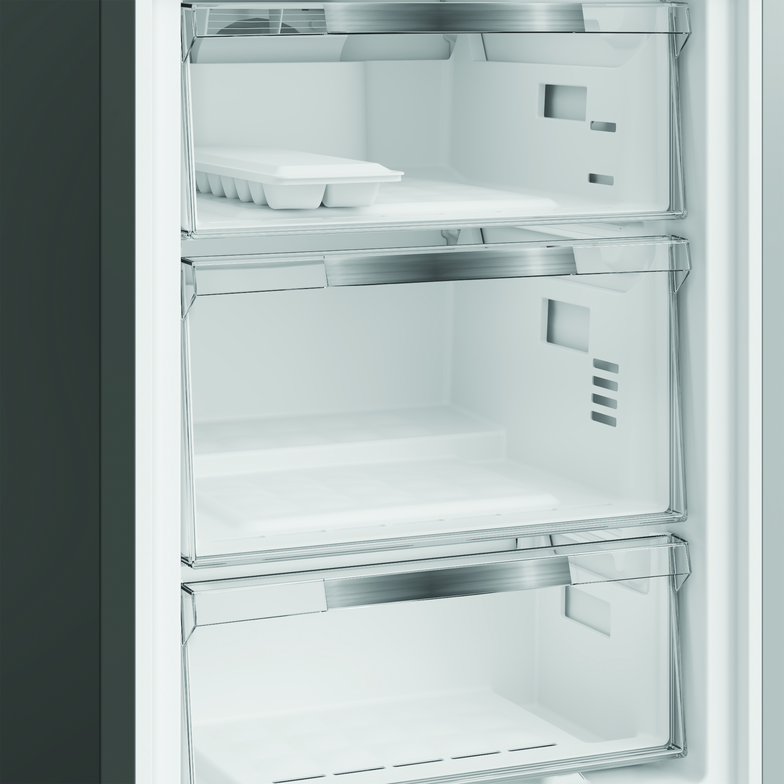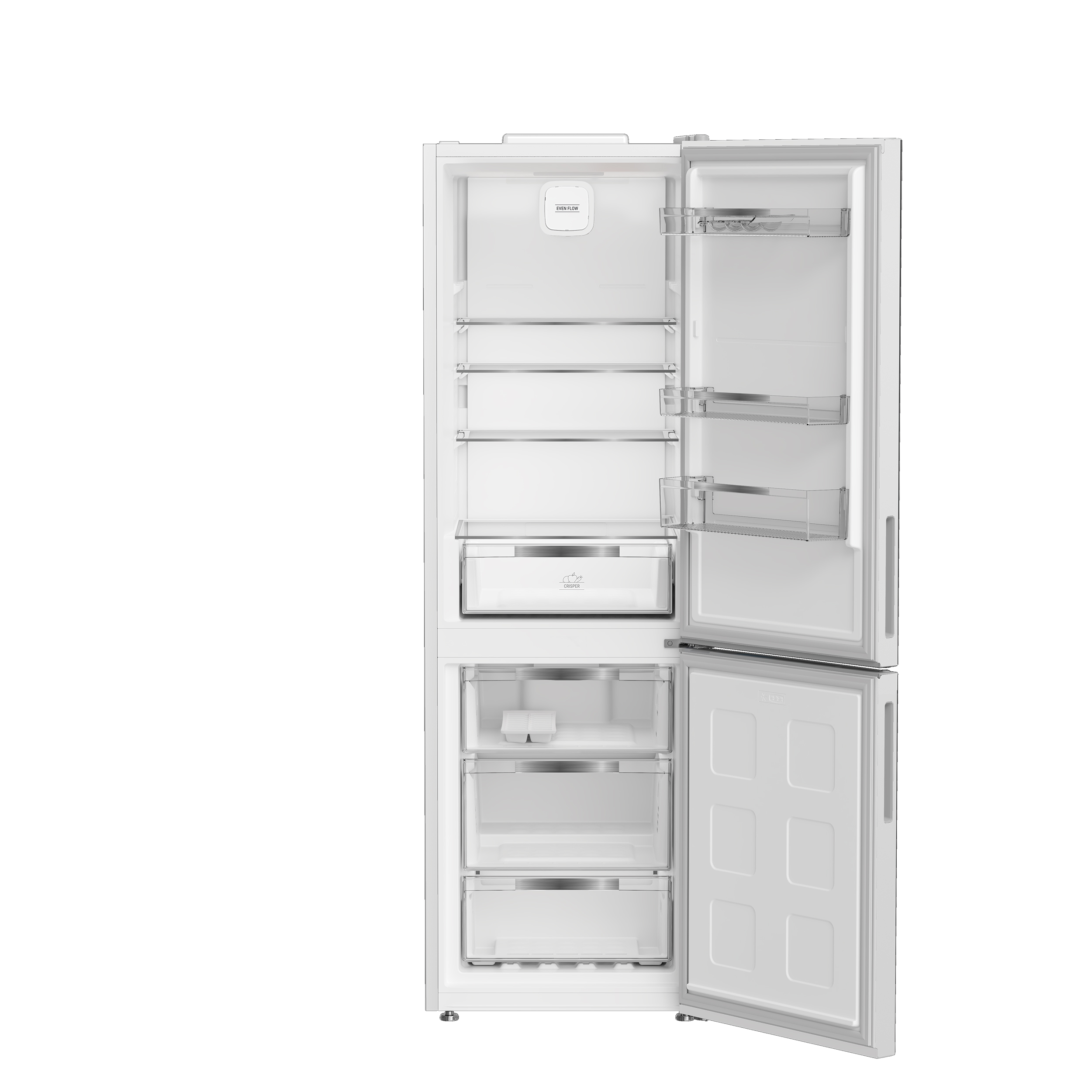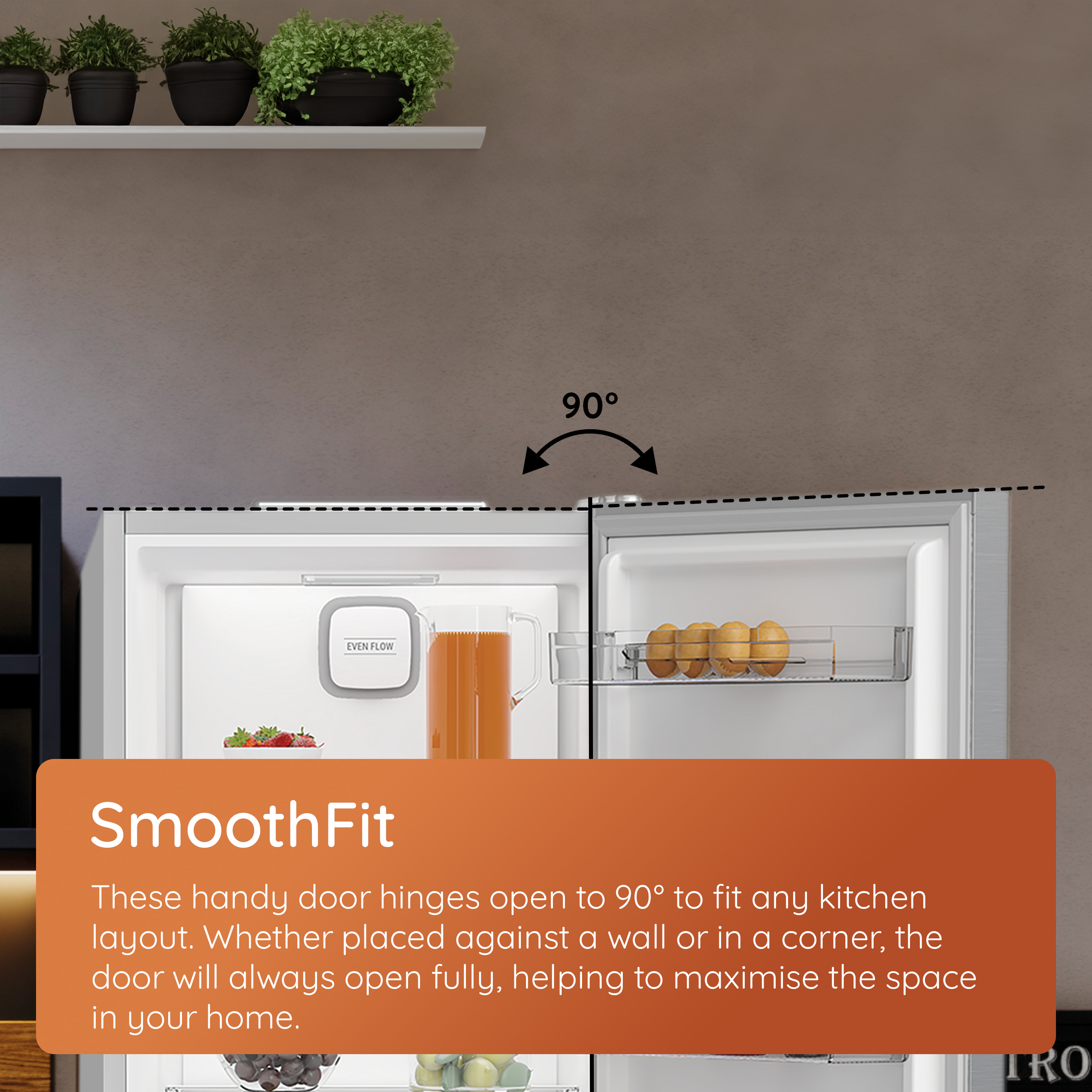Designed with family life in mind, this freestanding Hotpoint 60/40 fridge freezer in classic white offers generous storage and stylish design with a modern touchscreen display fo fingertip control. With a 316L capacity ° enough to store around 17 bags of food ° there's plenty of space to unload your weekly shop. The clever Dual No Frost system keeps the fridge and freezer compartments frost-free using independent airflows, preventing moisture build-up and making sure your food stays fresh and in great condition. Meanwhile, the Inverter Compressor ensures temperatures recover quickly after door openings, for efficient, quiet performance. Inside the fridge, Even Flow cooling ensures a consistent climate across every shelf, so your food stays perfectly crisp and tasty for uo tp 30% longer*. And the freezer comes with a Fast Freeze function to quickly freeze groceries and preserve their freshness. You'll also discover handy features, like 90° door hinges for flexible placement - opening fully even if against walls or in corners. Or the door alarm that beeps if the door has been left open too long. Holiday Mode is also great when you're away - efficiently conserving energy to give you peace of mind. *Weight loss and sensory evaluation tests used for the determination of shelf life were conducted internally by Beko Corporate on carrot, fresh-cut iceberg lettuce, fresh-cut tomato, strawberry, salami, and kashar cheese samples stored in the EvenFlow refrigerator and control refrigerator (without the EvenFlow technology) for a 12-day period. Actual results may vary based on food type and usage conditions.