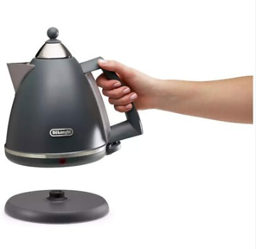 The De'Longhi Argento Silva range adds a touch of authentic Italian style to your kitchen with retro 1950's influences and a colour palette inspired by nature, providing a look that will last for years to come. This kettle has a 360-degree swivel base for cord free convenience. Do not worry about safety with the 3-level auto shut off safety protection. The kettle has a removable and washable anti-scale filter for easy cleaning. There is a power-on light and water level indicator for ease. Be sure to check out the matching toaster.
