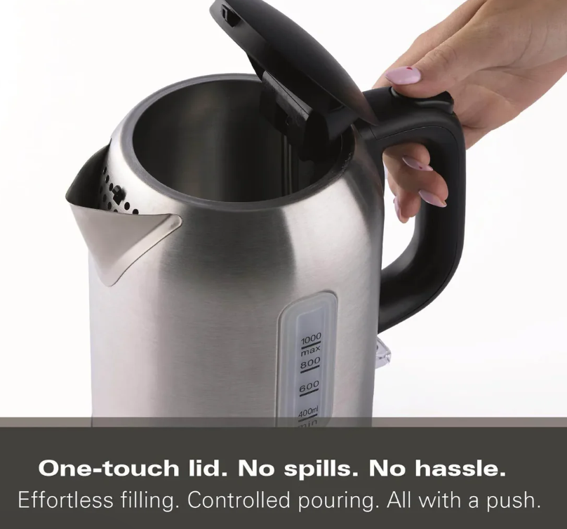 Compact 1L Capacity: Space saving design that boils up to 5 cups in a single use - ideal for compact kitchens.