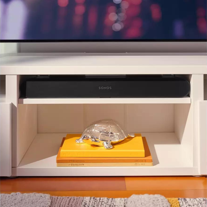 Experience precisely balanced sound, including crisp dialogue and solid bass, plus streamlined control with your TV remote, the Sonos app, Apple AirPlay 2, and more. It only takes two cables and a few minutes to get set up, and the forward-facing acoustics make Ray ideal for an enclosed space, like a shelf in your TV stand. Enjoy the flexibility to create the Sonos system you want over time when you add speakers for surround sound and multiroom listening.